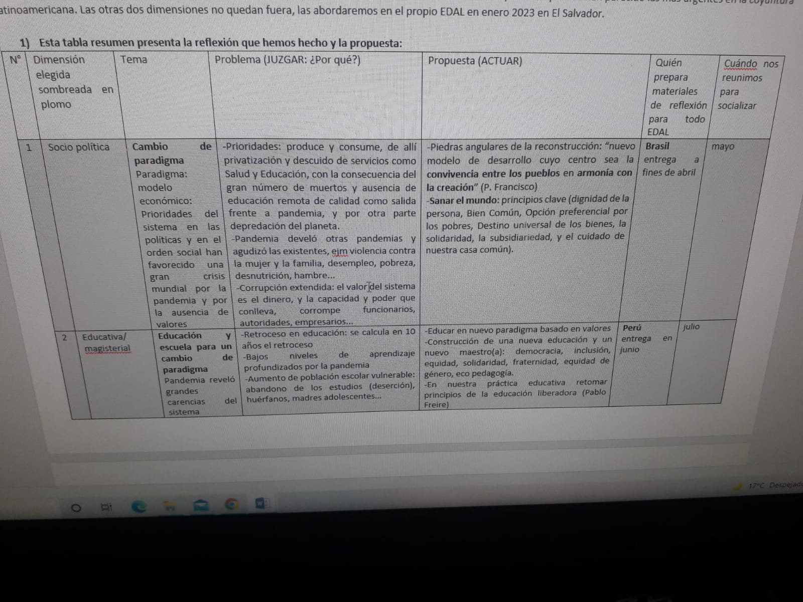 Reforzar nuestro compromiso y fe en un mundo y paradigma nuevos, tomando conciencia de la crisis que vivimos como humanidad y planeta, reveladas en los trastornos educativos y sociales provocados por la pandemia y el sistema neoliberal.